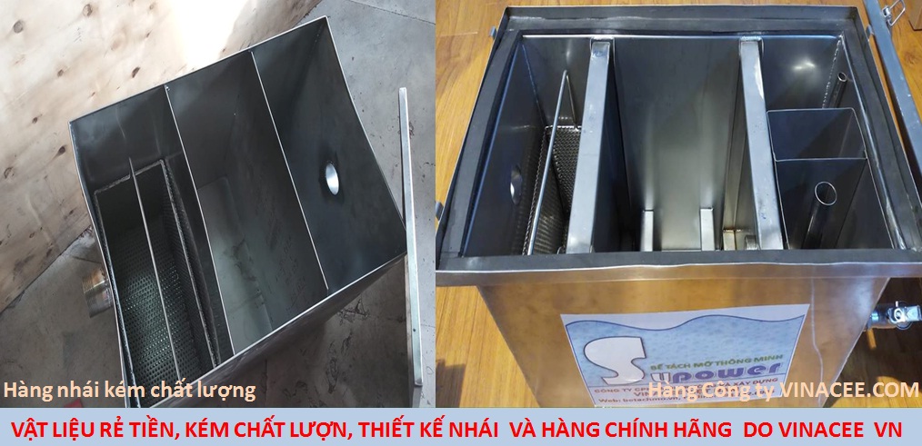 - Thùng lọc mỡ (bể tách mỡ inox) được thiết kế khoa học, công nghệ hiện đại được cắt gấp bằng máy thủy lực, che mối hàn bằng khí Agon tránh hiện tượng Oxy hóa. Các mối hàn TIC liền mặt và gờ cạnh.