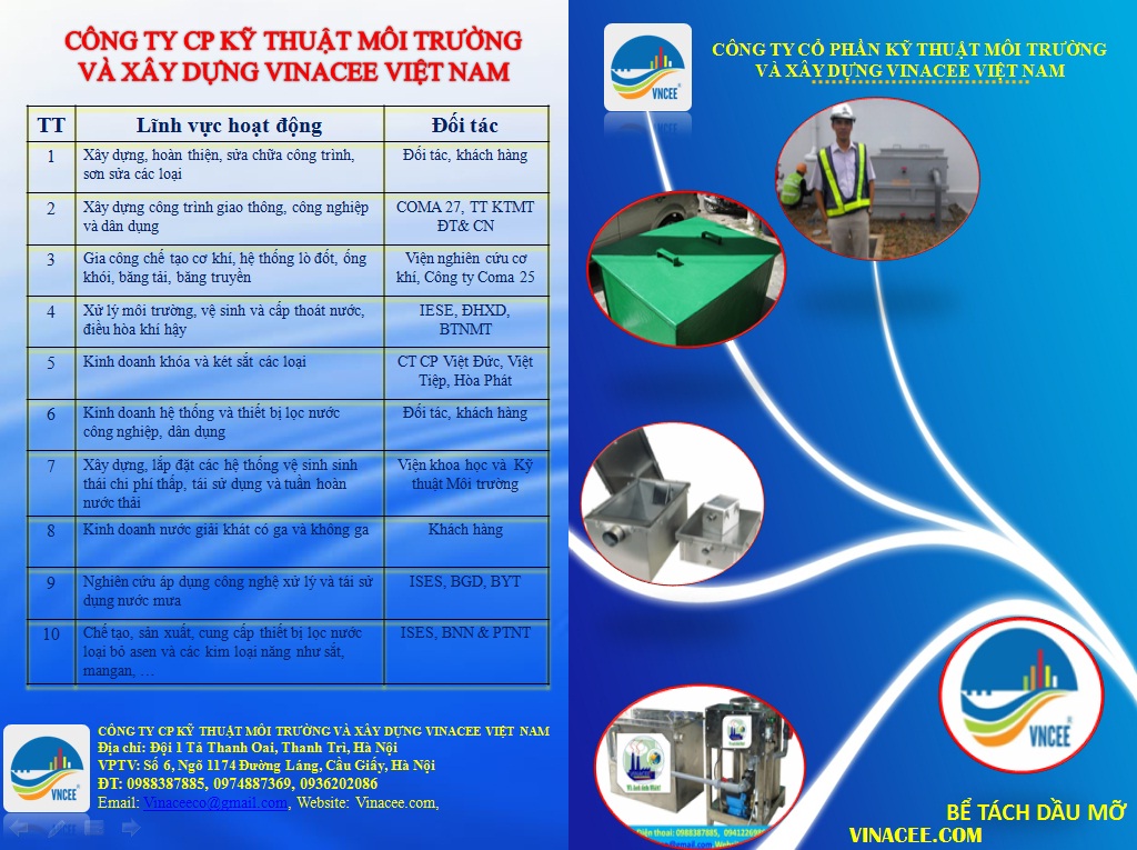 VINACEE đơn vị hàng đầu chuyên cung cấp và lắp đặt các thiết bị thùng lọc mỡ, thùng tách dầu mỡ,thùng lọc dầu mỡ,thùng tách mỡ, bể tách mỡ, bể tách dầu mỡ, bể lọc mỡ...thi công thiết kế và lắp đặt hệ thống lọc mỡ tự động, xử lý rác thải cho nhà hàng, khách sạn, khu công nghiệp chế biến thực phẩm...