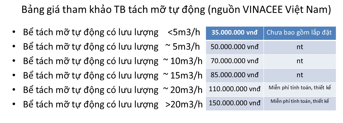Bảng giá tham khảo sản phẩm thiết bị tách dầu mỡ tự động (Xem thêm Catalogue).