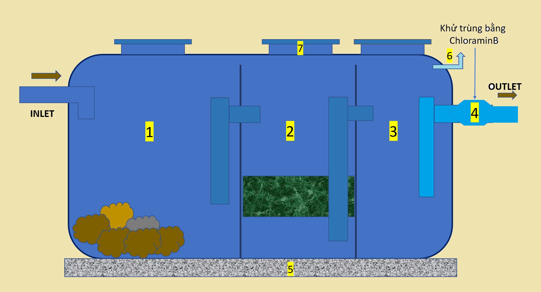 Bể tự hoại - công trình xử lý nước thải tại chỗ (Nguồn: Bộ xây dựng)