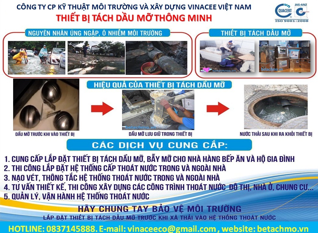 Vời nhiều năm kinh nghiệm trong lĩnh vực công nghệ môi trường, công nghệ hóa môi trường VINACEE Việt Nam luôn khăng định là đơn vị số 1 tiên phong về các giải pháp tách và xử lý dầu mỡ một cách thông minh nhất.