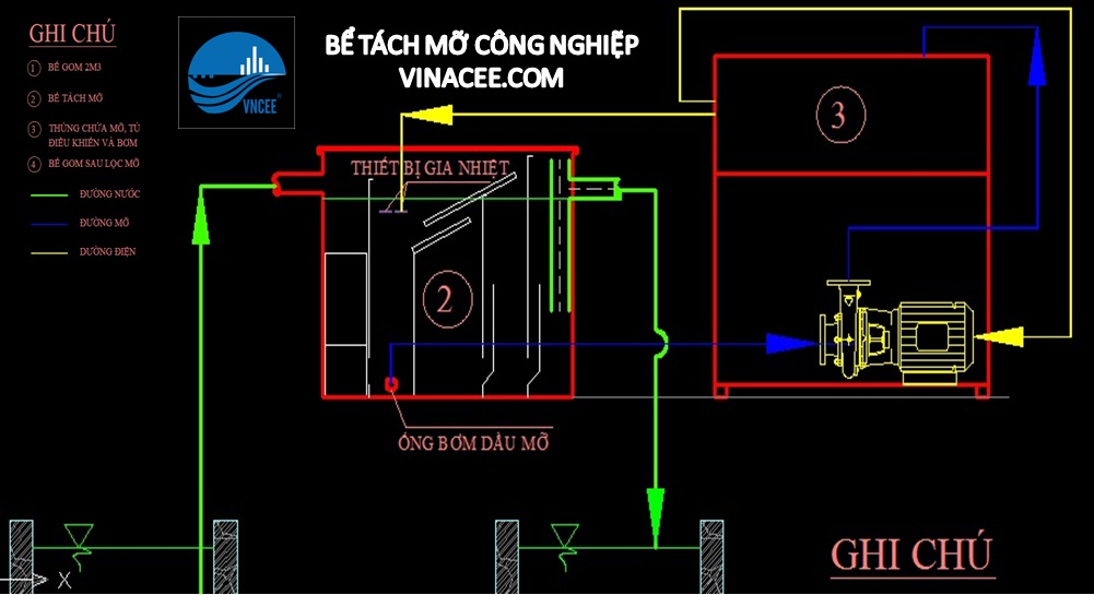 MÔ HÌNH SƠ ĐỒ LẮP ĐẶT HỆ THỐNG TÁCH MỠ - SỬ DỤNG XE LẤY MỠ THEO ĐỊNH KỲ