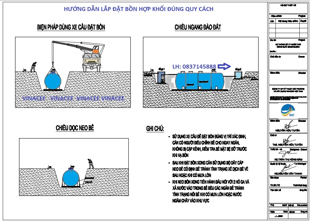 Trước khi hạ bồn thì phải đầm thật tốt khu vực hạ bồn và đổ bê tông nền thật tốt tránh nún sau này gây ra vạy bồn sụt lún,..