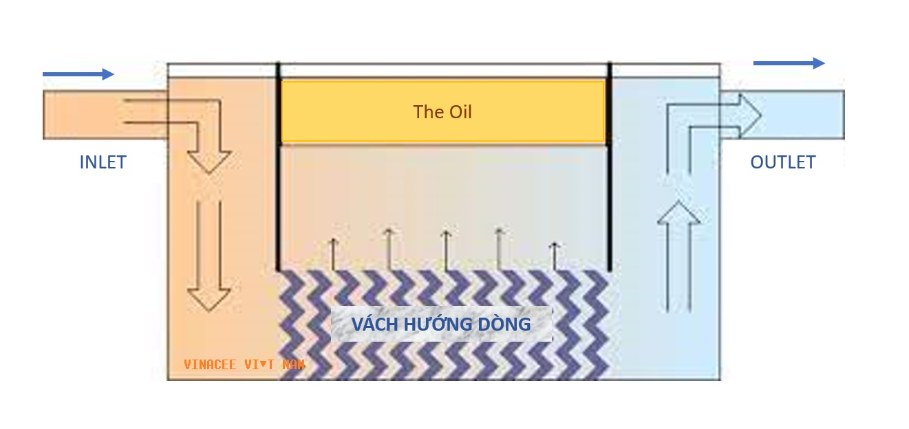 - Giai đoạn 2: Đây là giai đoạn thực hiện tách mỡ ra khỏi nước. Bể sẽ được thiết kế một vách để ngăn hướng dòng, từ đó tạo điều kiện để mỡ và nước được tách riêng với nhau.