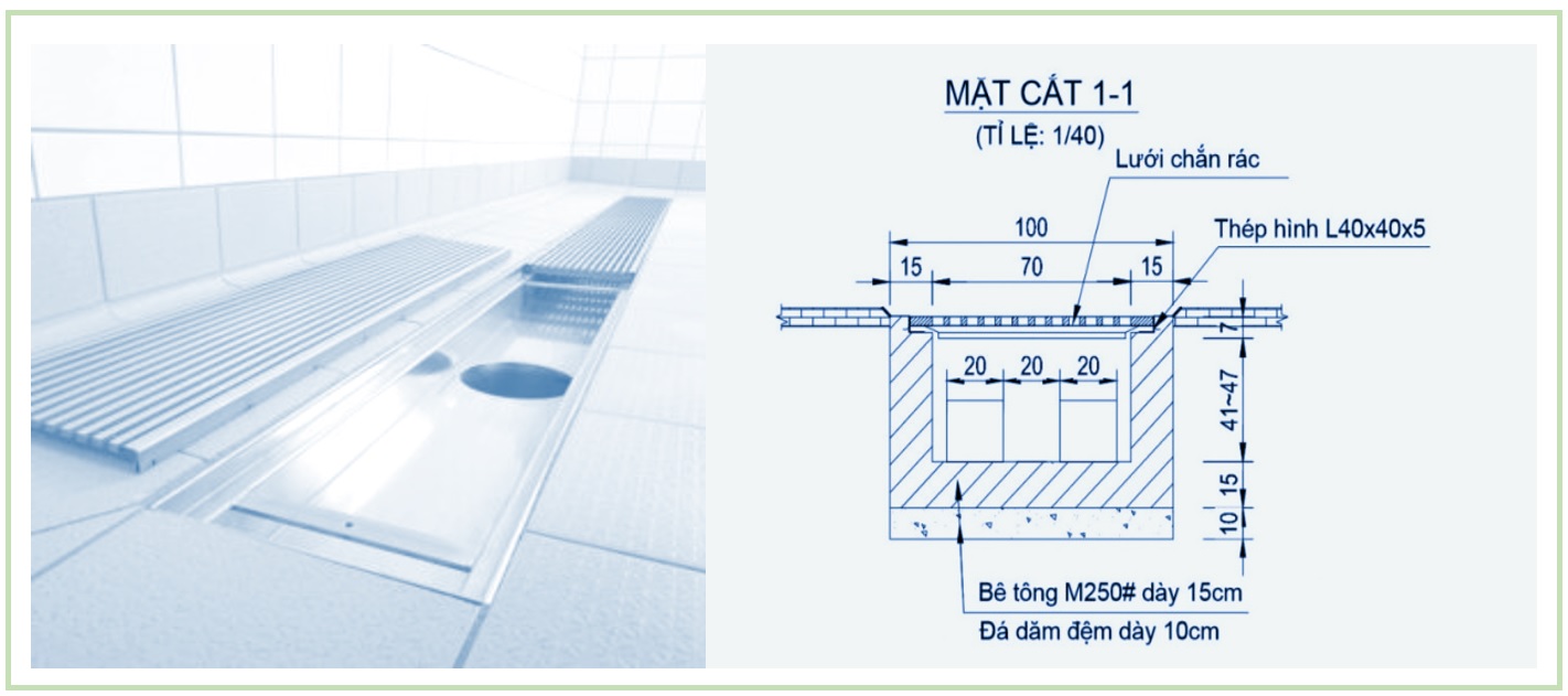 Về tổng thể hệ thống thoát nước: Máng thoát sàn thường kết hợp với các thiết bị như bể tách mỡ âm sàn, hố thu nước để loại bỏ triệt để rác thải mà mỡ, cũng như là tránh gây tắc nghẽn đường ống bảo vệ tốt cho công trình thoát nước, hệ thống thoát nước công cộng.