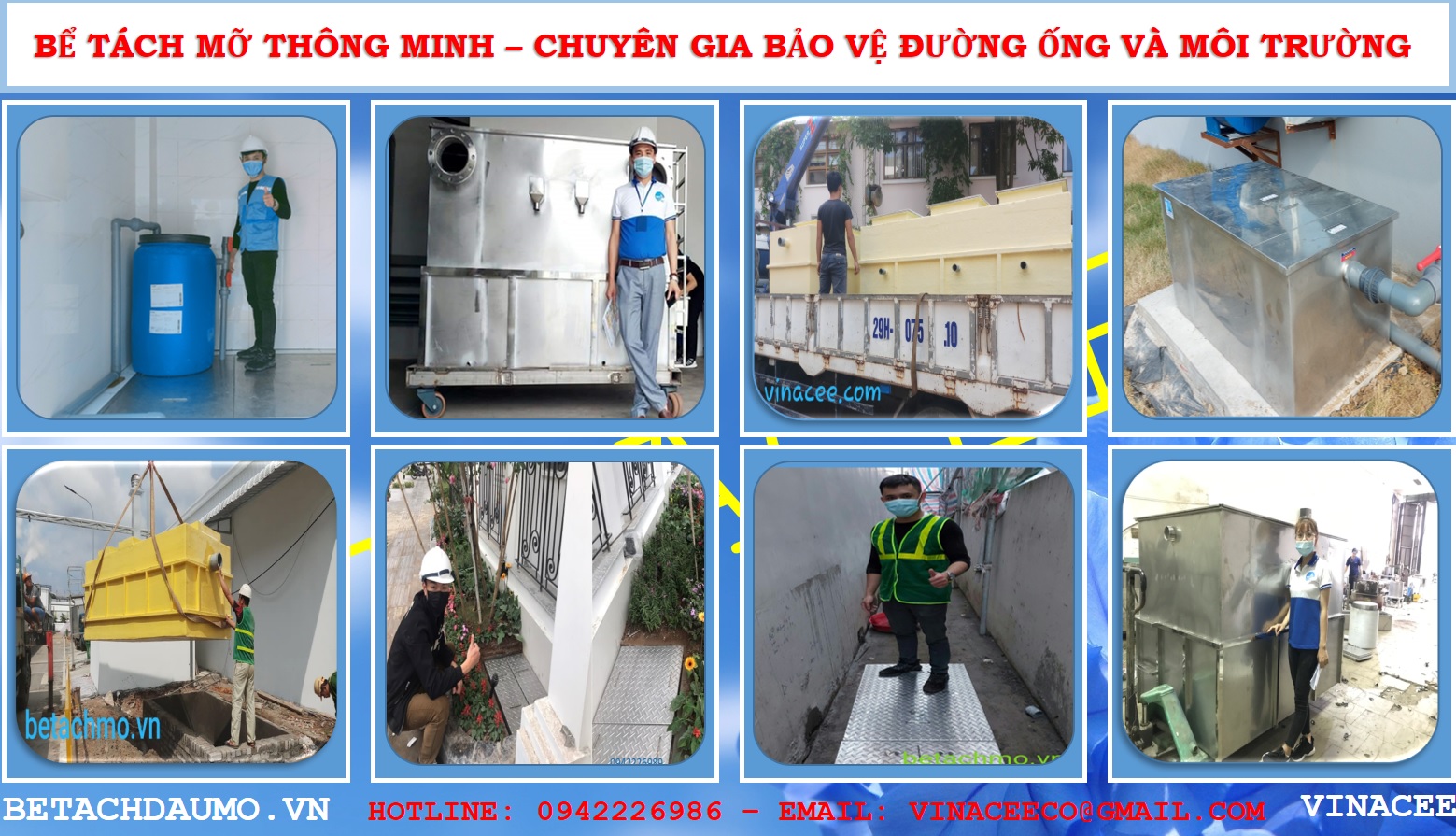 Tại Việt Nam, VINACEE là đơn vị hàng đầu trong lĩnh vực nghiên cứu thực nghiệm, chế tạo, nhập khẩu cung cấp lắp đặt thiết bị tách dầu mỡ nói chung và các thiết bị tách dầu mỡ tự động nói riêng. Sản phẩm của VINACEE cung cấp cho hơn 3000 (ba ngàn) khách hàng trong và ngoài nước được cấp Chứng nhận Quy trình quản lý chất lượng ISO 9001:2015 và được tặng kỷ niệm chương vì sự nghiệp kỹ thuật môi trường 2017.