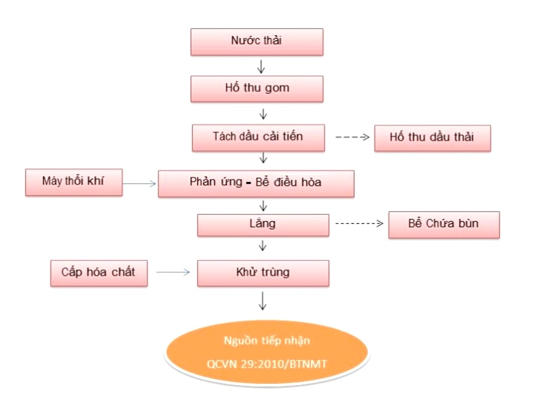 Sơ đồ công nghệ hệ thống xử lý nước thải nhiễm dầu hoàn chỉnh