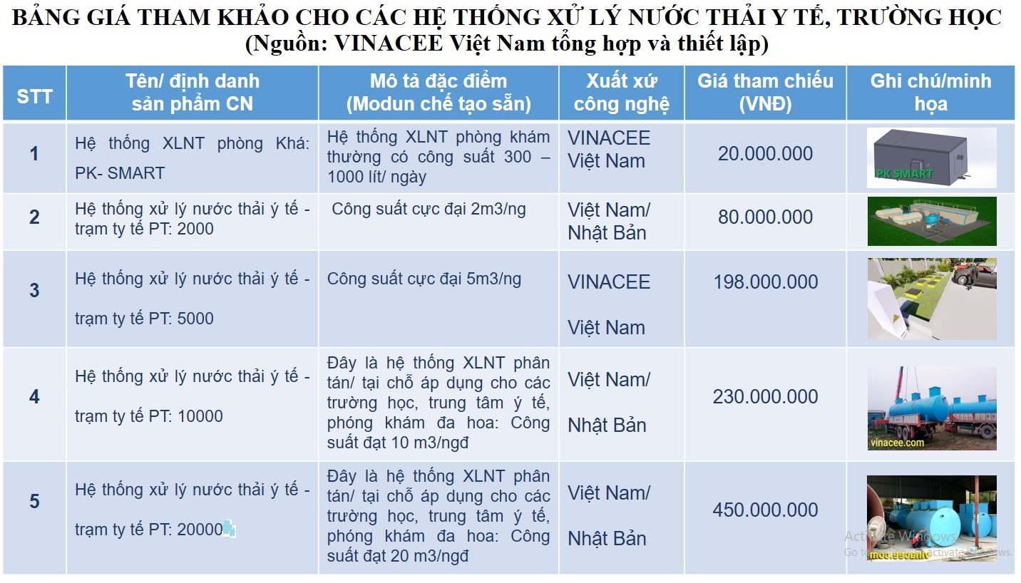 Công bố: Bảng báo giá hệ thống xử lý nước thải chế tạo sẵn cho Trường học - Cơ sở Y tế, trung tâm y tế