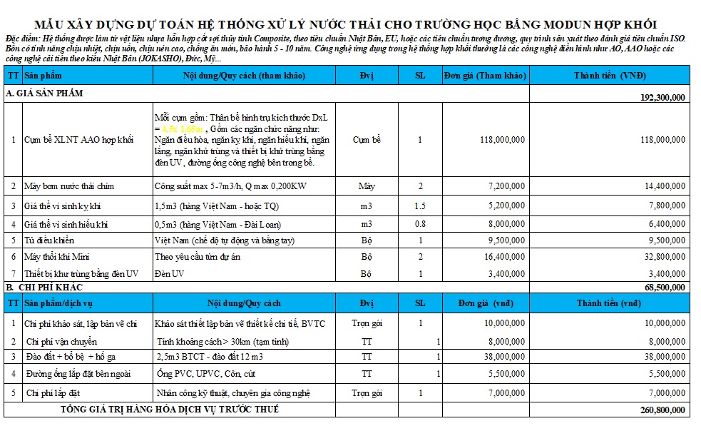 Vậy khi đầu tư xây dựng hệ thống thu gom, xử lý nước thải của các cơ sở này, cần chú ý các điều gì? Dự toán chi phí ở mức nào, có những loại hình dịch vụ nào phù hợp? Hãy cùng các chuyên gia VINACEE tham khảo các bảng dự toán chi tiến đối với công trình nêu trên nhé.