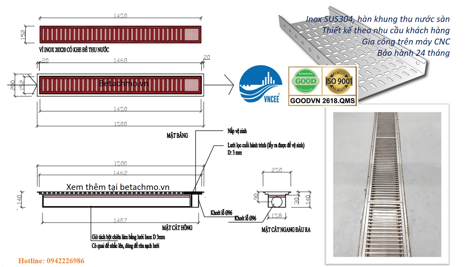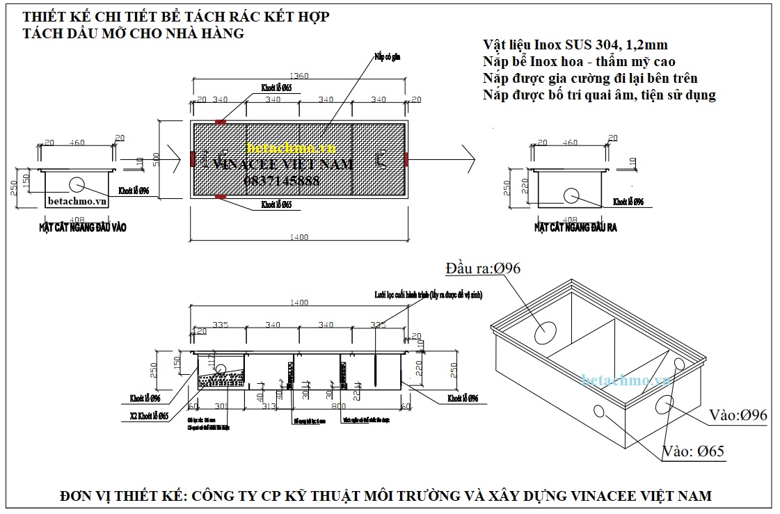 Hộp tách rác, mỡ, ghi thoát sàn cho nhà hàng và bếp ăn công nghiệp - Mẫu thiết kế