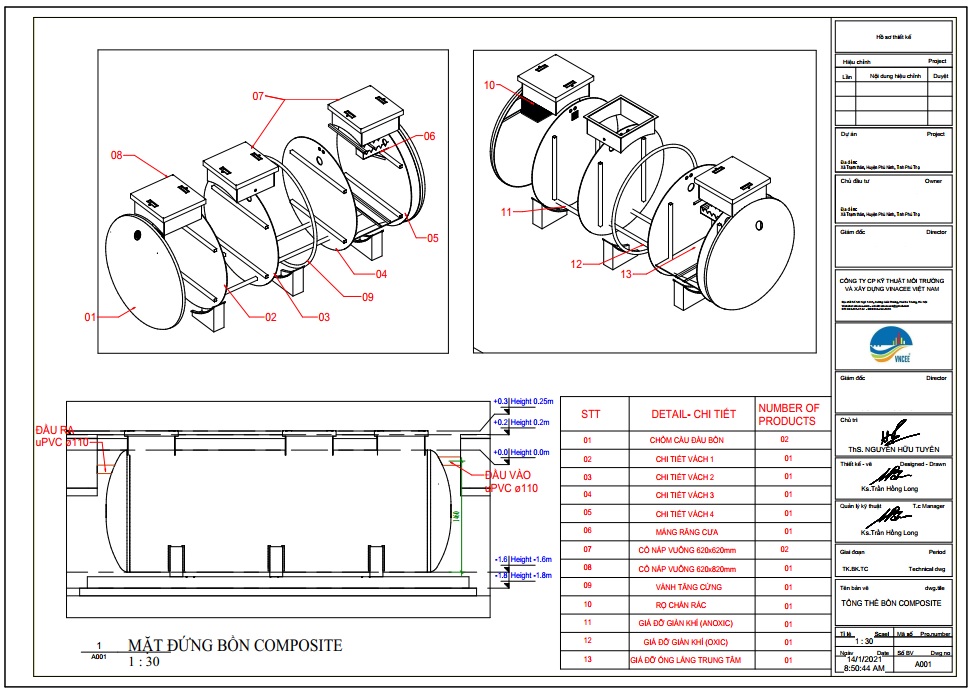 Mẫu bản vẽ bể tự hoại cải tiến bằng Composite sử dụng trong thiết kế công trình