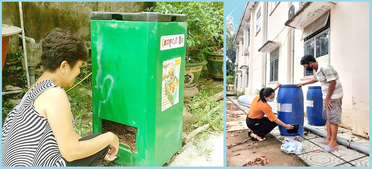 Tại Việt Nam, nhiều nhà sản xuất cũng đã bắt đầu chế tạo những chiếc thùng nhựa có khoét lỗ (kết hợp hiếu khí và yếm khí) để đẩy nhanh tốc độ ủ phân thay vì dùng những thùng nhựa kín như trước đây. “Nếu có điều kiện, người dân có thể sắm những chiếc máy tái chế rác như trên, nếu không thì có thể tự ủ tại nhà bằng thùng đựng rác có nắp đậy và đẩy nhanh tốc độ ủ bằng cách thêm men vi sinh vào” – giáo sư – tiến sĩ Lê Huy Bá hướng dẫn.