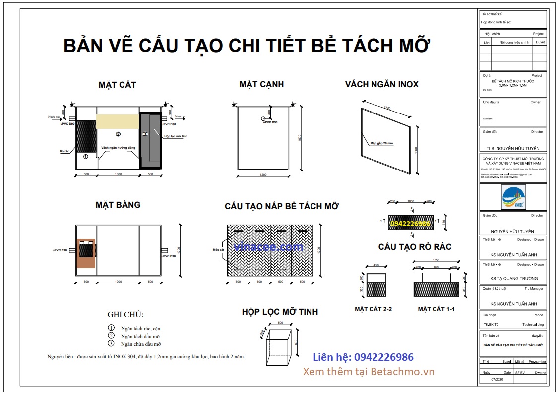 Để hỗ trợ tốt hơn cho khách hàng VINACEE thực hiện chương trình tư vấn, khảo sát và thiết kế bể tách mỡ miễn phí đối với các sản phẩm bể tách mỡ cho các dự án Xử lý nước thải, xử lý dầu mỡ tại các cơ sở kinh doanh nhà hàng, khách sạn, các trường học, bệnh viện…: