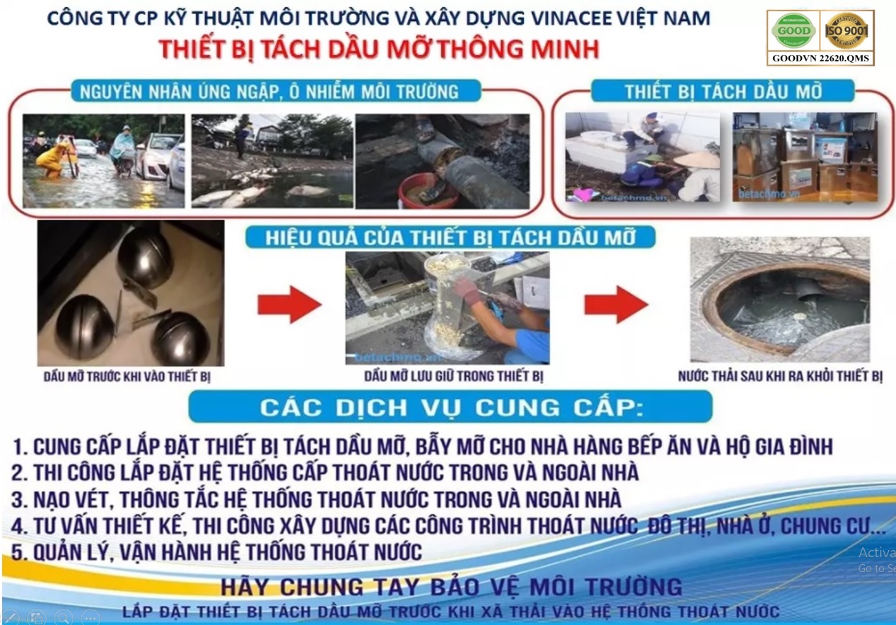 Cần nâng cao năng lực cấp- thoát nước bằng thiết bị tách dầu mỡ thông minh.