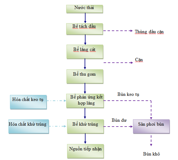 Lượng bùn dư từ quá trình keo tụ từ bể phản ứng kết hợp lắng được thải bỏ định kỳ về sân phơi bùn, bùn sau khi phơi khô được bỏ vào bao và xử lý theo quy định.