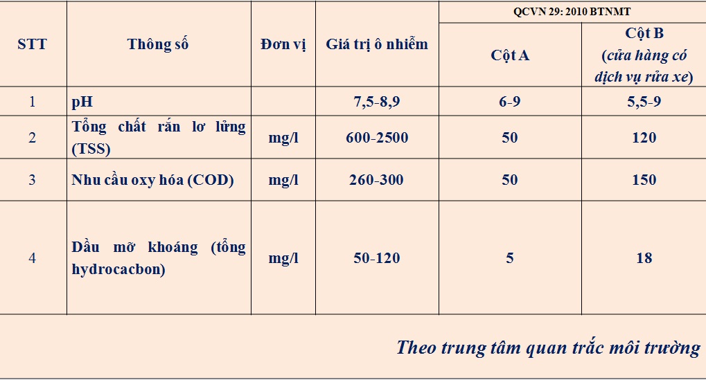Rửa xe tự động, gara ô tô, xử lý nước thải để đảm bảo đạt chuẩn quy định