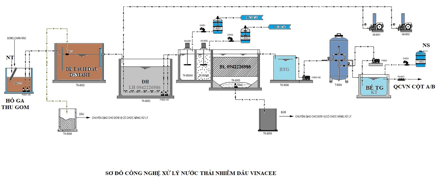 Sơ đồ công nghệ xử lý nước thải nhiễm dầu tối ưu cho các cơ sở xăng dầu, kho chứa xăng dầu