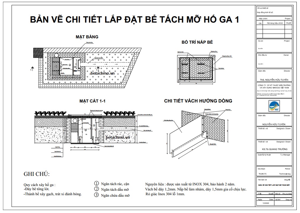 Tài liệu thiết kế bể tách mỡ theo Tiêu chuẩn ngành cho nhà hàng, khách sạn