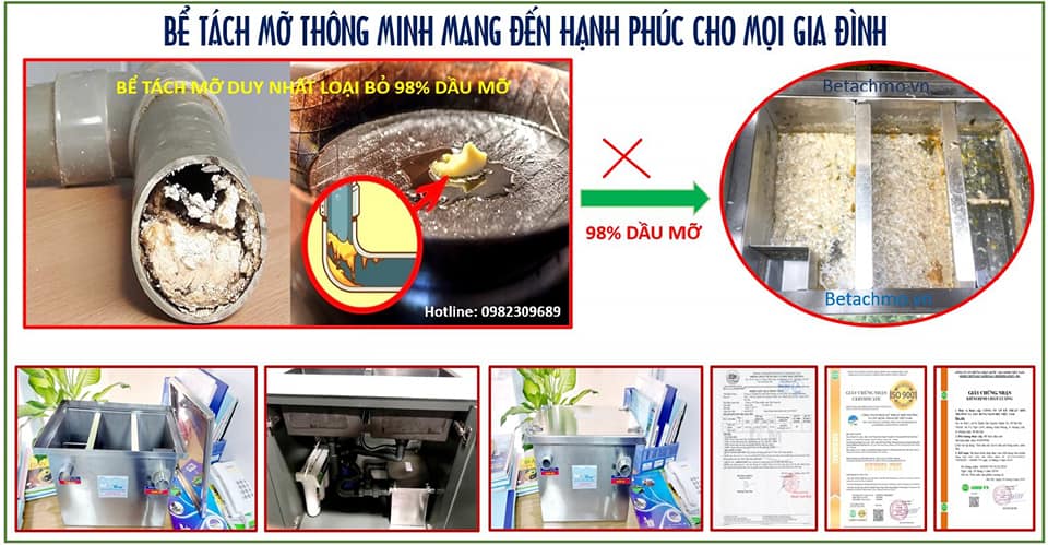 Bể tách mỡ, thùng bẫy mỡ Là thiết bị quan trọng dùng để tách dầu mỡ thừa sau quá trình sơ chế, nấu ăn và vệ sinh nhà bếp, nhà xưởng ra khỏi nước thải. Được bố trí dưới chậu rửa trong bếp ăn của gia đình, quán ăn, căng tin, nhà hàng, khách sạn nhằm ngăn chặn dầu mỡ thừa dính bám gây tắc đường ống và bảo vệ môi trường, bảo vệ hệ thống công trình.
