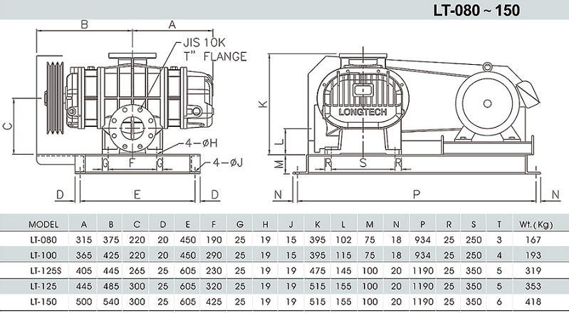 Từ các tính toán kỹ thuật như trên chúng ta lựa chọn Model máy thổi khí Longtech có các thông số về lưu lượng khí, áp lực máy, công suất điện năng, kích thước chi tiết của máy phù hợp thông qua Cataloguecủa nhà sản xuất.