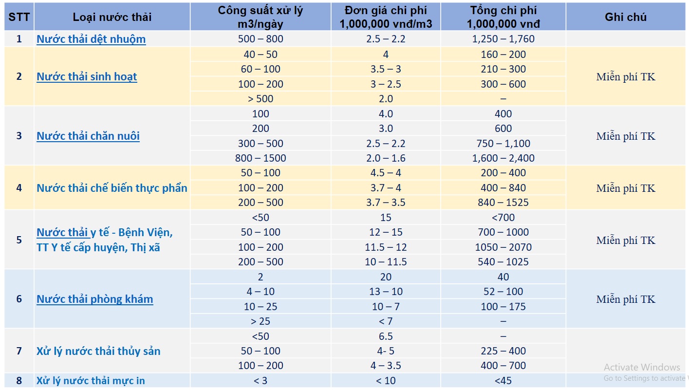 Bảng giá hệ thống xử lý nước thải một số lĩnh vực áp dụng tham khảo 2020