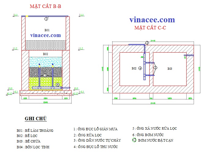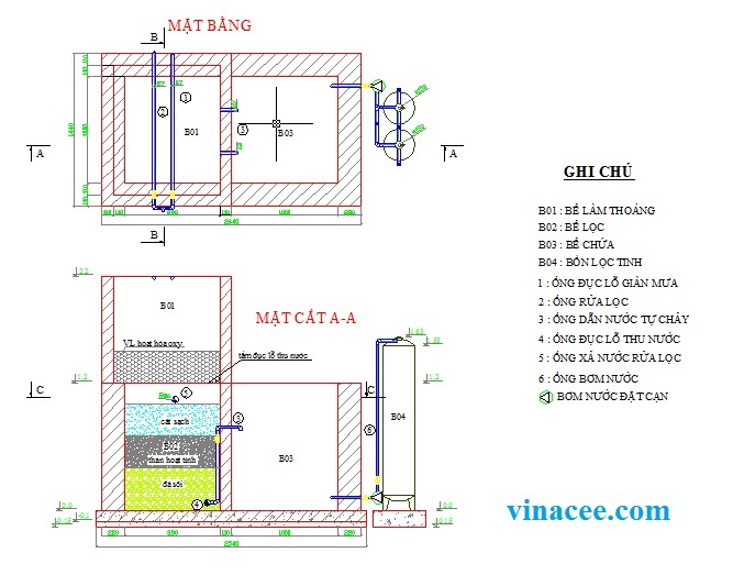 - Có thể bố trí 2 hoặc 3 lớp vật liệu, tùy theo nguồn nước: