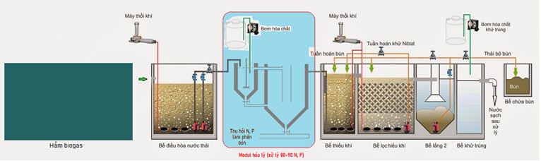 Bên cạnh đó, các thành phần N, P được tách thu hồi thông qua modul hoá lý là dạng hợp chất chất dinh dưỡng cho cây trồng, nên được tái sử dụng tái sử dụng làm phân bón cho cây trồng theo mô hình Kinh tế tuần hoàn, trong đó các hoạt động chăn nuôi cung cấp thực phẩm cho thị trường được đặt ra mục tiêu kéo dài tuổi thọ của vật chất bằng cách tái sử dụng và loại bỏ tác động tiêu cực đến môi trường.